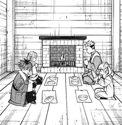 46 | 22 |  |  | ラントの食事を見守るユーベルの前にも料理皿が置かれています。アニメでも手をつけてはいないものの、ユーベルは飲み物だけというのは不自然だという判断があったのかもしれません。 でもそのユーベルのパンはラントの注文ぶんだったのでは…(あげた?) |
