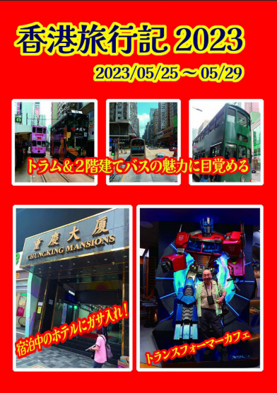 ![]() 香港旅行記2023 | 2023/8/12 | 62(59) | – | 500 | コミケ102初売り 返還直後で、むちゃくちゃピリピリしていて、宿泊したチョンキンマンションが一時封鎖され警察のガサ入れが入ったのはこの本 |