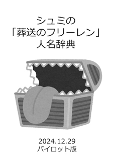 ![]() シュミの「葬送のフリーレン」人名辞典 | 2024/12/29 | (26) | – | – | コミケ105初売り 2025年版を出したので扱い終了 |