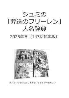 ![]() シュミの「葬送のフリーレン」人名辞典2025冬 | 2025/12/30 | 28(28) | – | 200 | コミケ107初売り 147話まで対応版 |