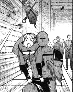 というランユベの息のあったバトルで、このネタ自体は原作とアニメで同じなのですが、アニメでは立ったユーベルの両脚ごしに後ろから映すというあざといアングルで表現されています。まあユーベルは少なくとも外見はお色気担当と言えるので構わないのですが…。